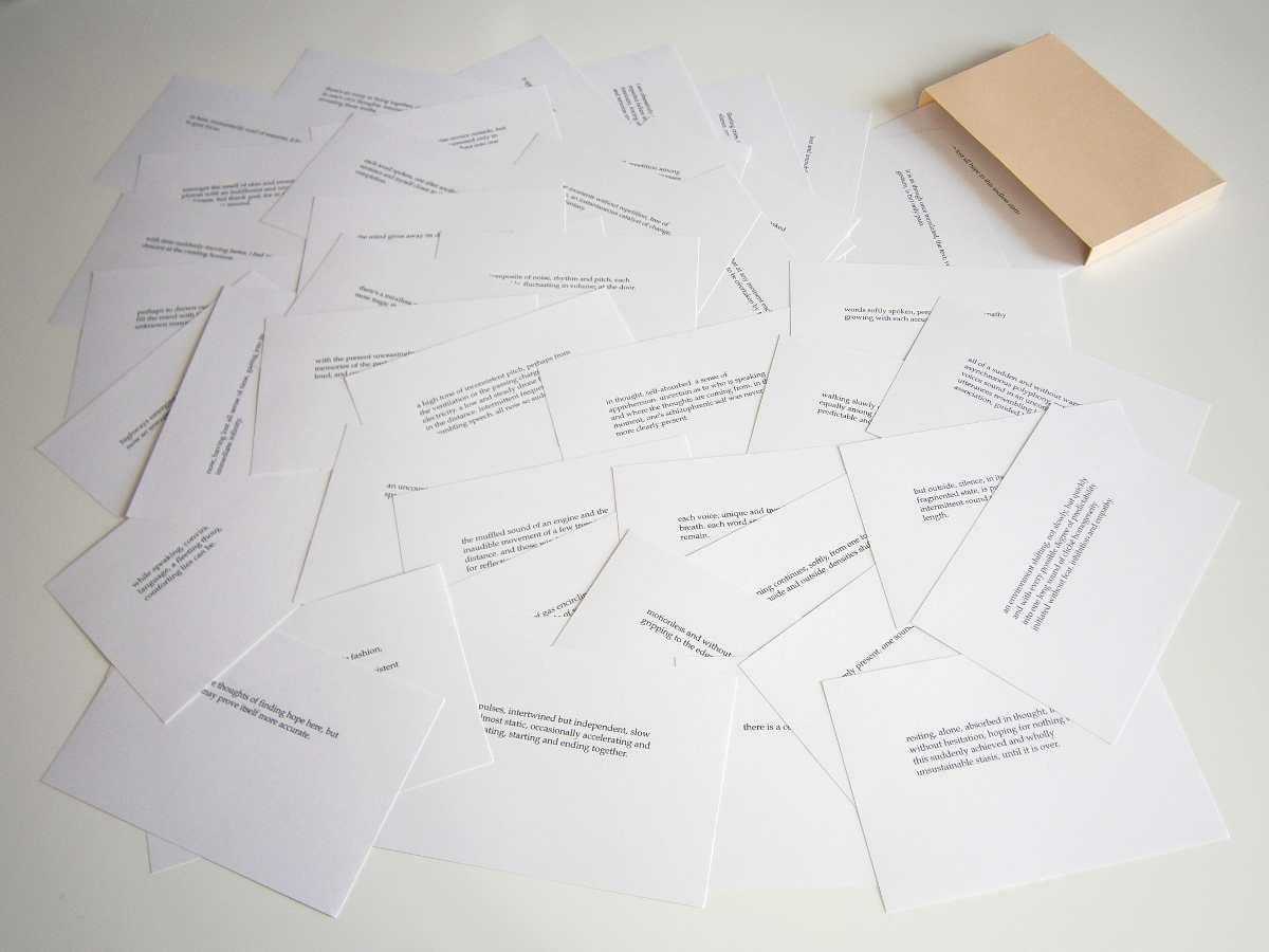 text on sixty index cards with a score/guide on method, locale and situation of reading